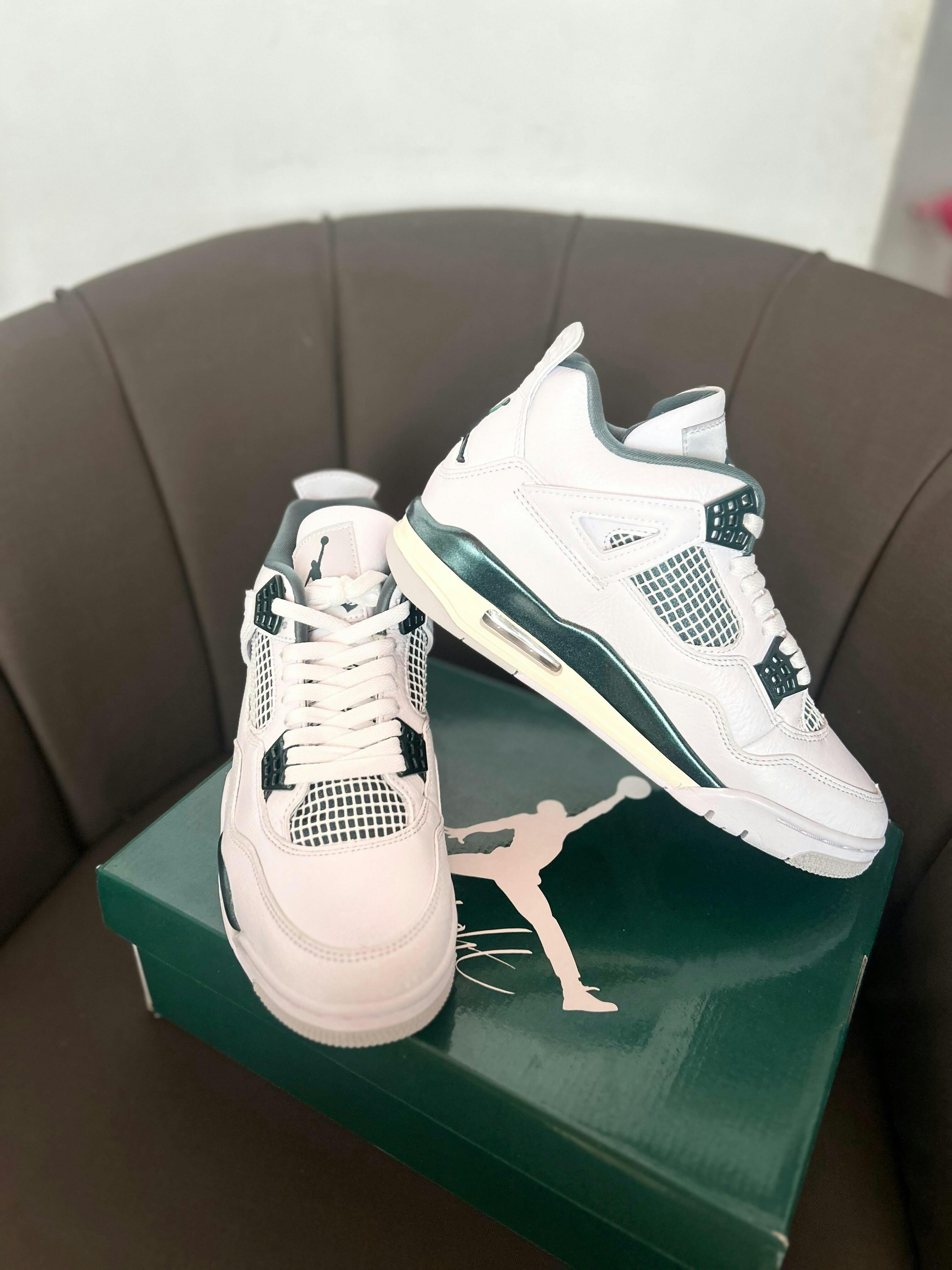 The Jordan 4 Retro Oxidized Green takes the recognizable Air Jordan 4 retro silhouette and updates it with a colorway of White and Neutral Gray with Oxidized Green accents.